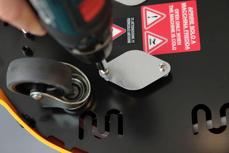 6) Capovolgere nuovamente la macchina e porla al di sopra di un contenitore lasciando che la caldaia si vuoti completamente.