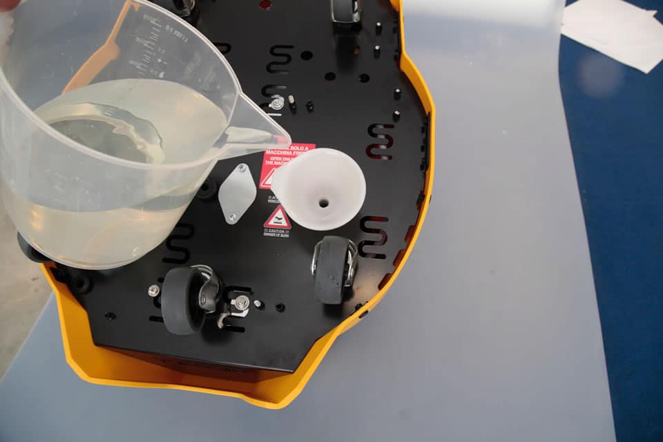 10) riempire la caldaia con 2 litri di acqua pulita.